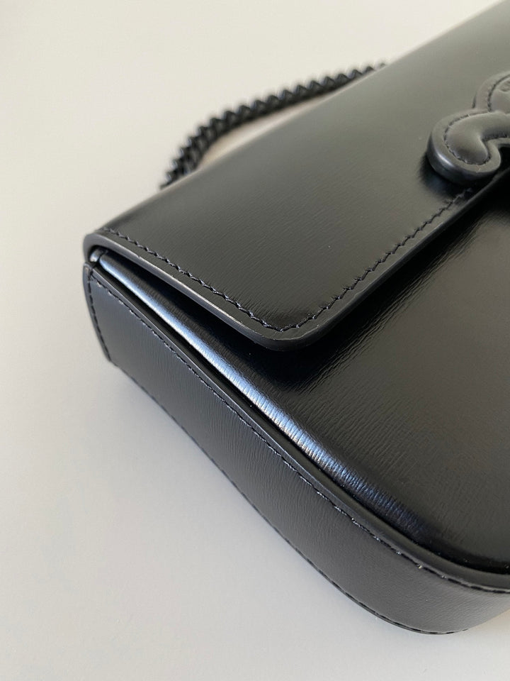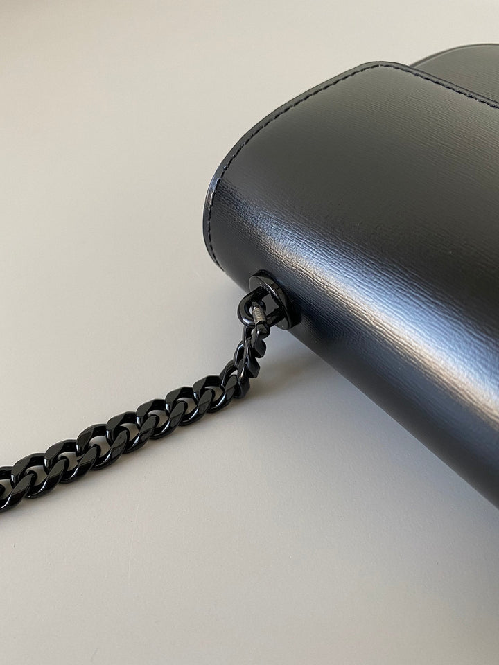 20 CHAIN EMBOSSED ARMPIT BAG FULL BLACK CALFSKIN