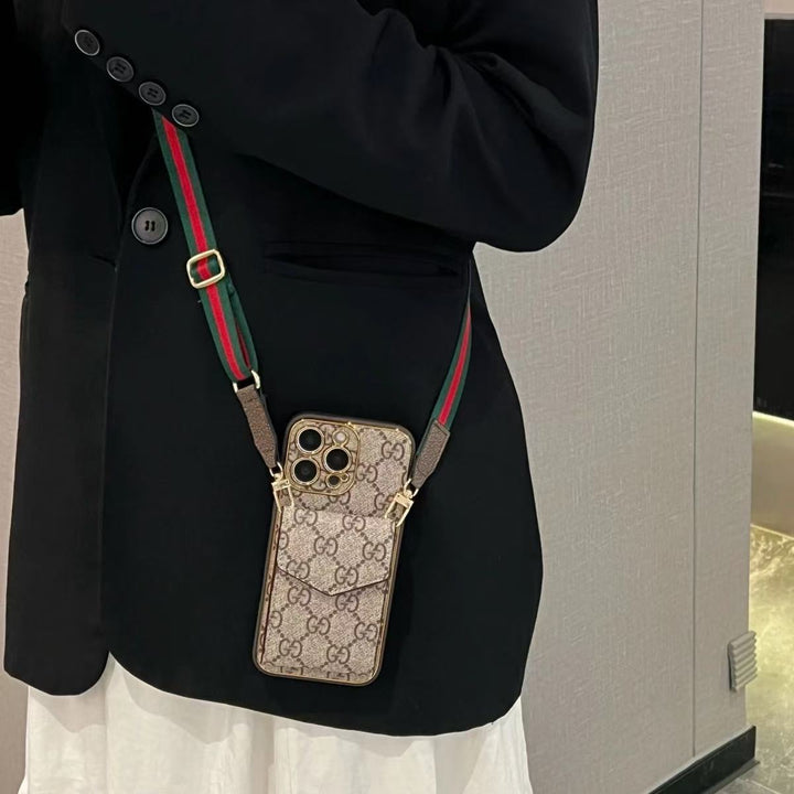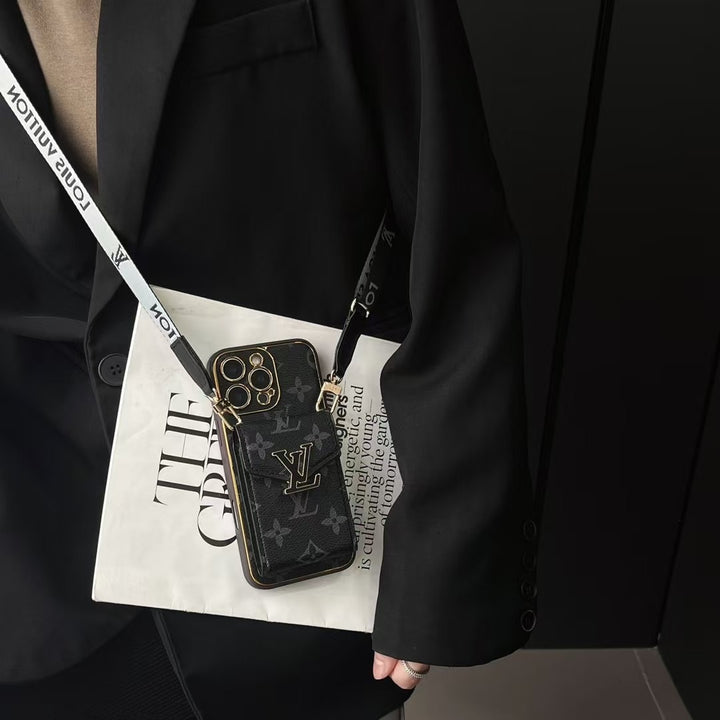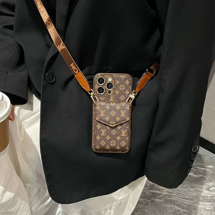 Apple mobile phone case oblique hanging strap card holder multi-layer