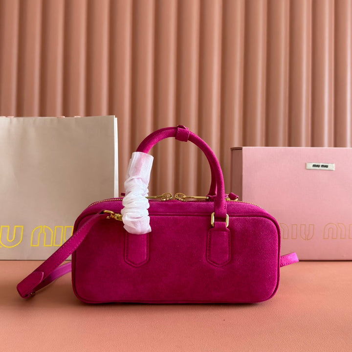 ARCADIE BAG 27 IN FUCHSIA SUEDE GOLD HARDWARE