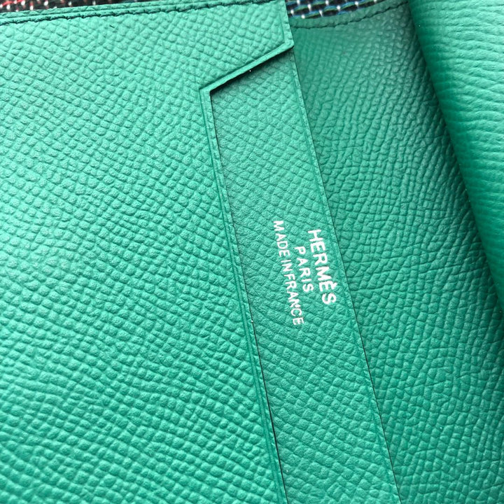 BEARN COMPACT WALLET 12 IN GREEN FOREST EPSOM LEATHER