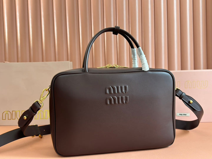 BEAU TOP HANDLE BAG 34 IN CEDAR BROWN SMOOTH CALFSKIN