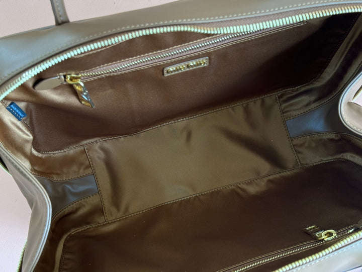 BEAU TOP HANDLE BAG 34 IN TAWNY BROWN SMOOTH CALFSKIN