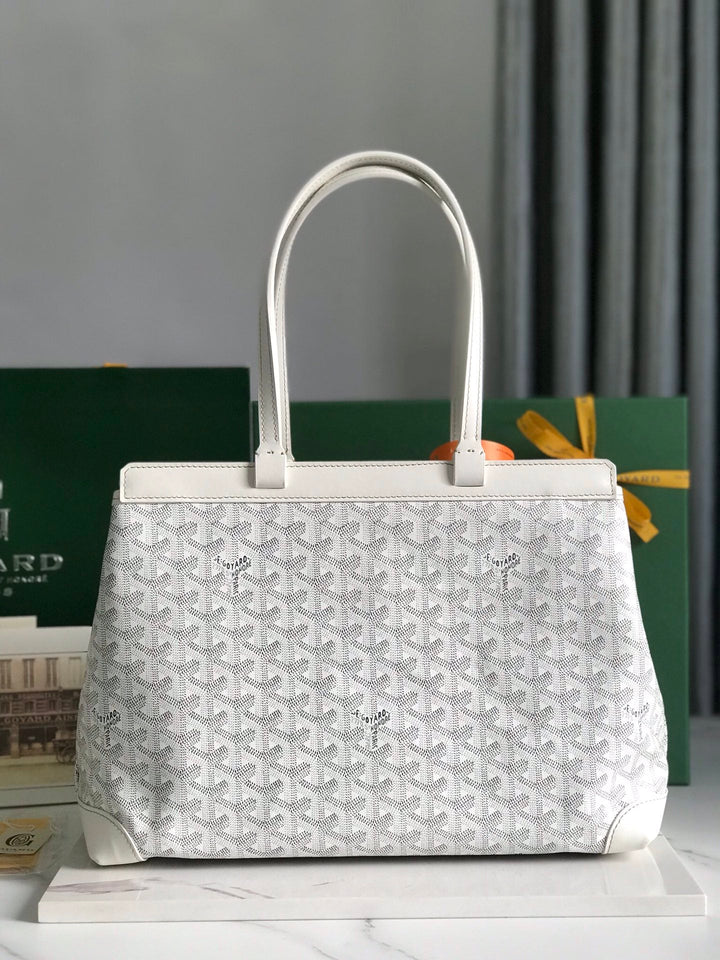 BELLECHASSE BIAUDE PM BAG 36 IN WHITE GOYARDINE CANVAS AND CALFSKIN TRIM