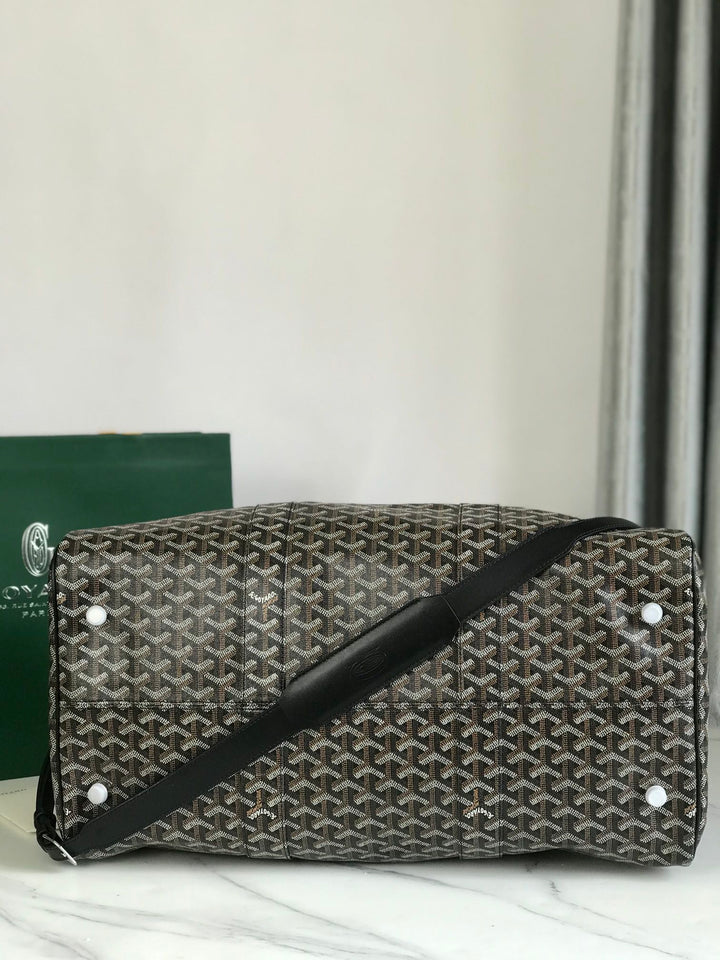 BOSTON 50 BAG IN BLACK GOYARDINE CANVAS AND CALFSKIN TRIM