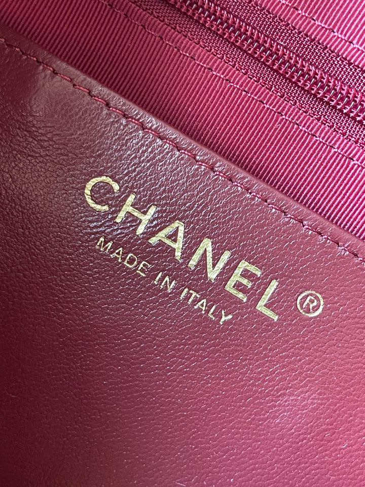 CAMERA BAG 24 IN BUCCANEER RED QUILTED LAMBSKIN DOUBLE C GOLD COIN