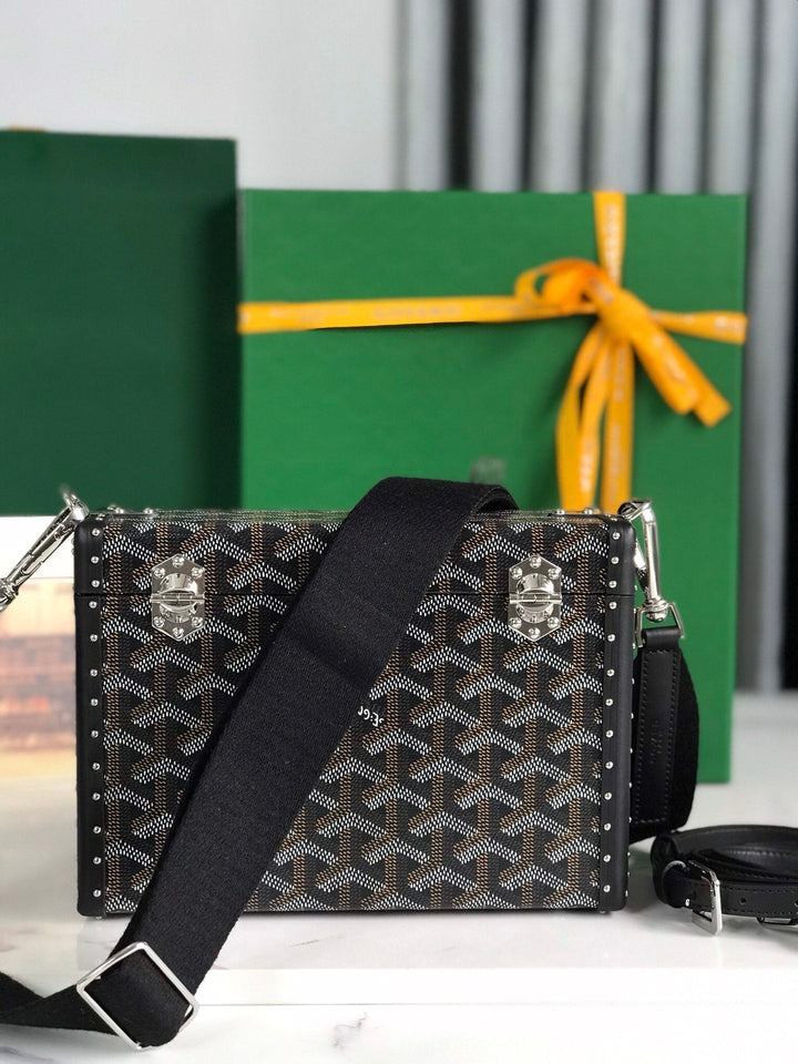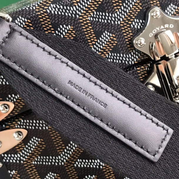 CASSETTE TRUNK BAG 21 IN BLACK GOYARDINE CANVAS & CLAMECY COWHIDE