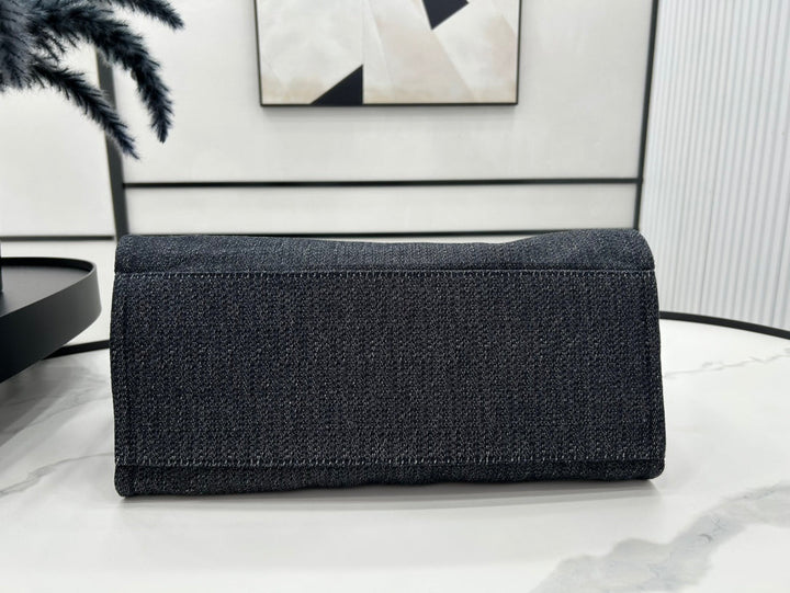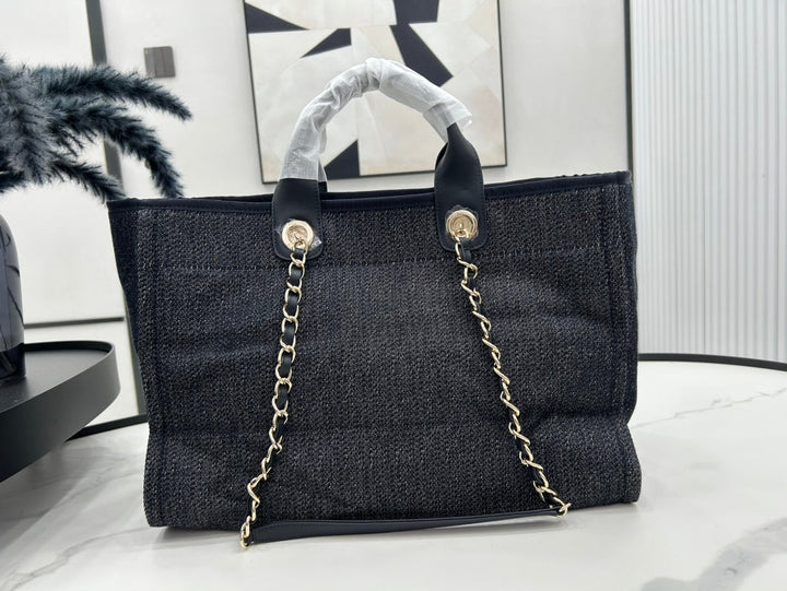 CC DEAUVILLE LARGE 38 TOTE BAG IN BLACK CANVAS WITH WHITE LOGO EMBROIDERED