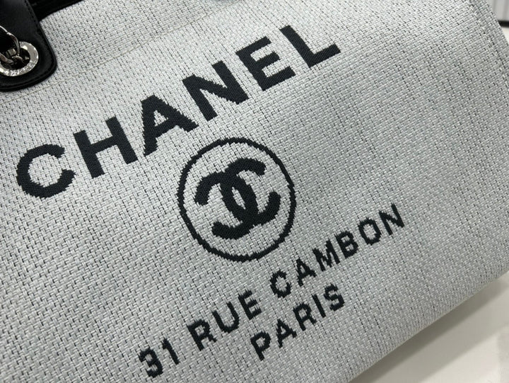 CC DEAUVILLE LARGE 38 TOTE BAG IN LIGHT GREY CANVAS WITH BLACK LOGO