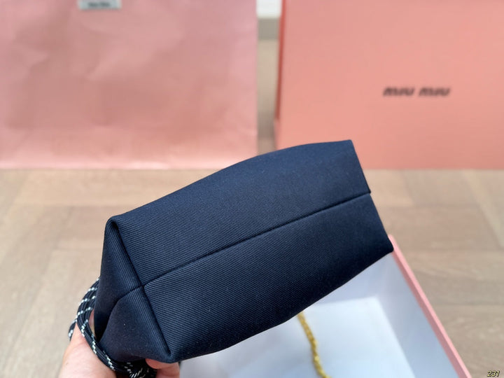 CHAIN SHOULDER BAG 18 IN BLACK FABRIC GOLD HARDWARE