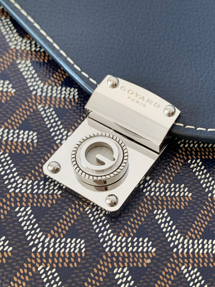CHYPRE WALLET-POUCH 21 IN NAVY BLUE GOYARDINE CANVAS AND CALFSKIN