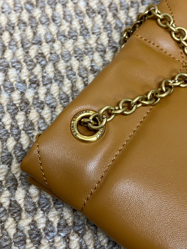 DRAWSTRING CHAIN STRAP SHOULDER BAG 39 IN TORTILLA BROWN QUILTED CALFSKIN