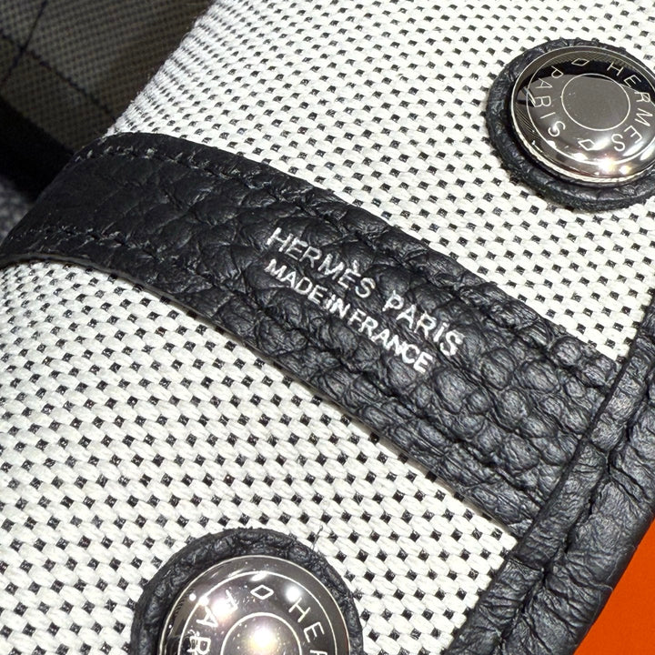 GARDEN PARTY 30CM IN WHITE TOILETS COTTON CANVAS AND BLACK CALFSKIN