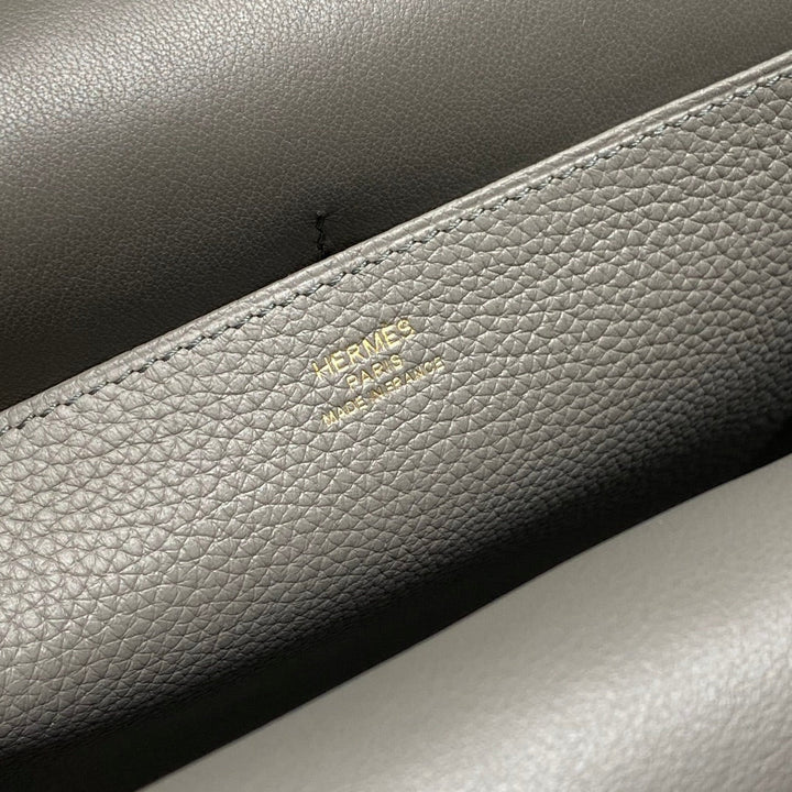 HALZAN 25 HANDLE BAG IN GREY GRAINED CALFSKIN