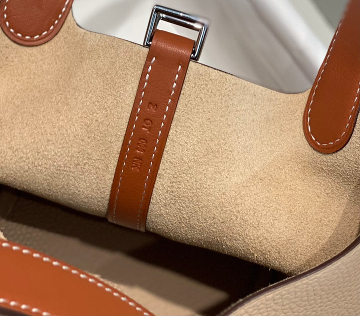 HERMES 25S PICOTIN LOCK 18 IN BURNT ORANGE AND LIGHT BROWN CALFSKIN SILVER HARDWARE