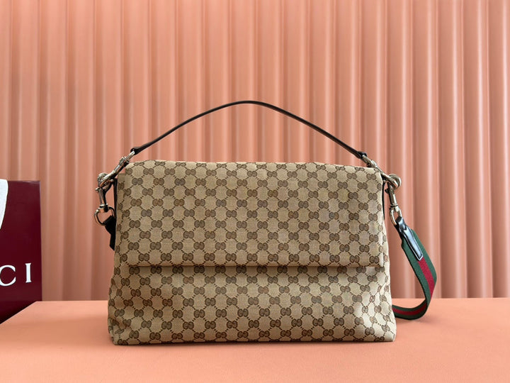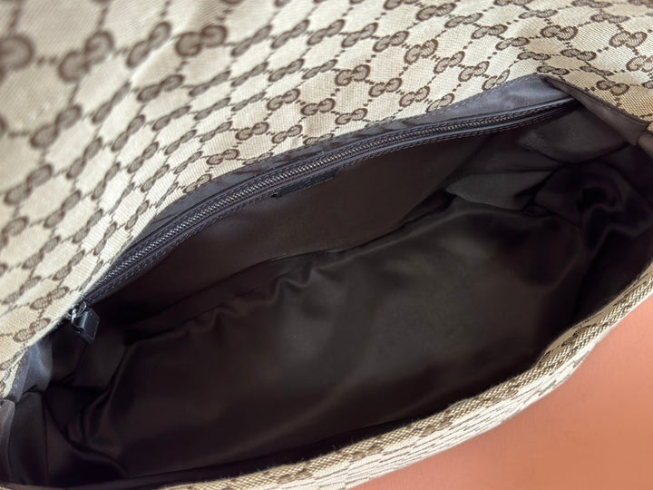 LARGE CROSSBODY BAG 36 IN BEIGE AND DARK BROWN CANVAS MONOGRAM LOGO