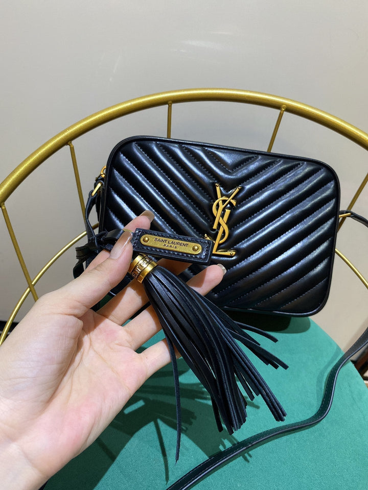 LOU 23 CAMERA BAG IN BLACK/ GOLD QUILTED LEATHER