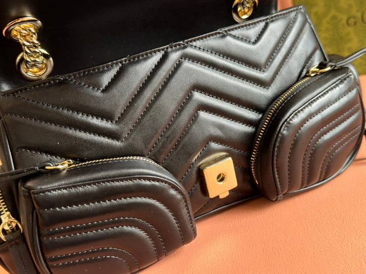 MARMONT SMALL MULTI-POCKET BAG 25 IN BLACK CALFSKIN GOLD HARDWARE