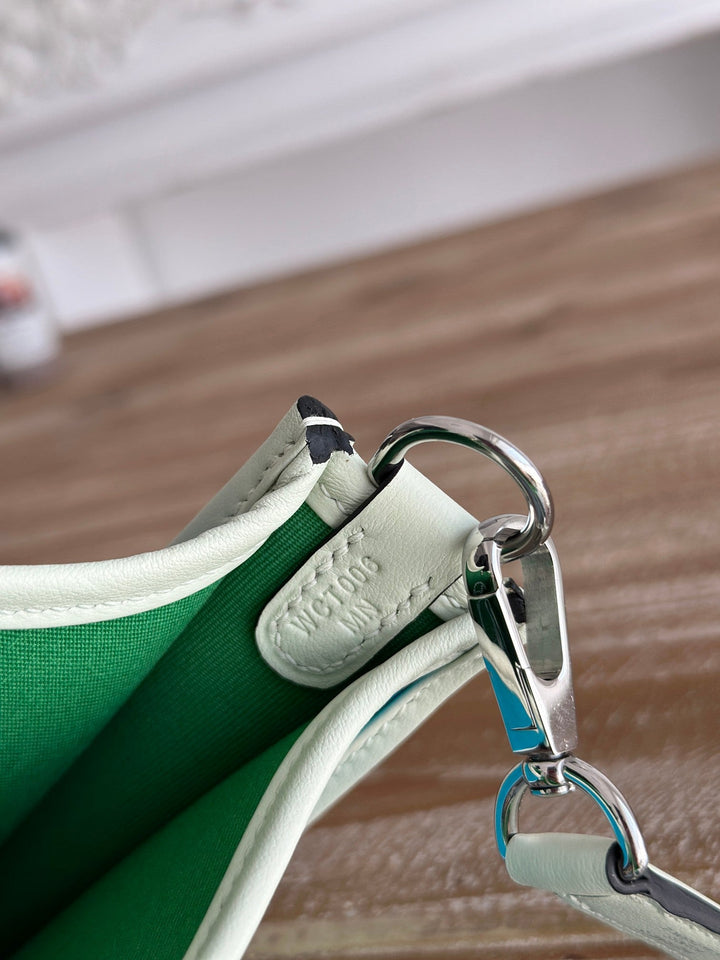 MINI NEO 17 EVELYNE BAG IN SKY BLUE CANVAS AND WHITE CALFSKIN
