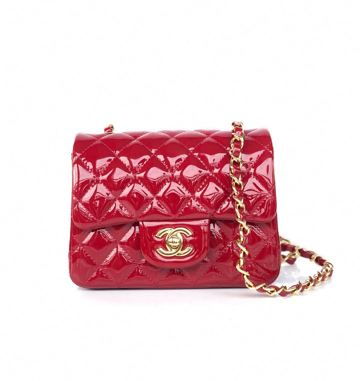 MINI SQUARE FLAP BAG 17CM RED PATENT CALFSKIN GOLD HARDWARE