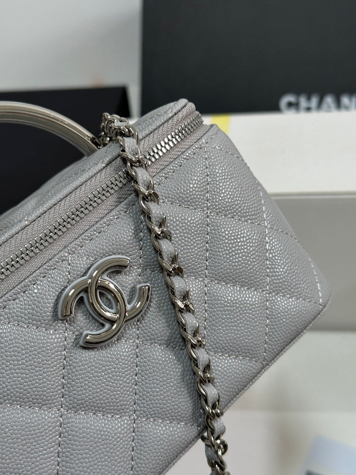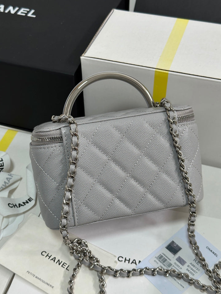 MINI VANITY TOP HANDLE CASE 17 IN GREY CAVIAR SKIN SILVER-TONE PLATED METAL
