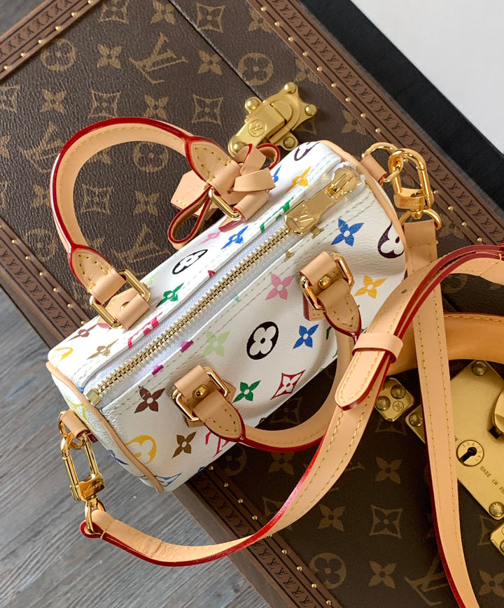 NANO SPEEDY BAG 16 IN COLORFUL MONOGRAM PATTERN AND WHITE COATED CANVAS