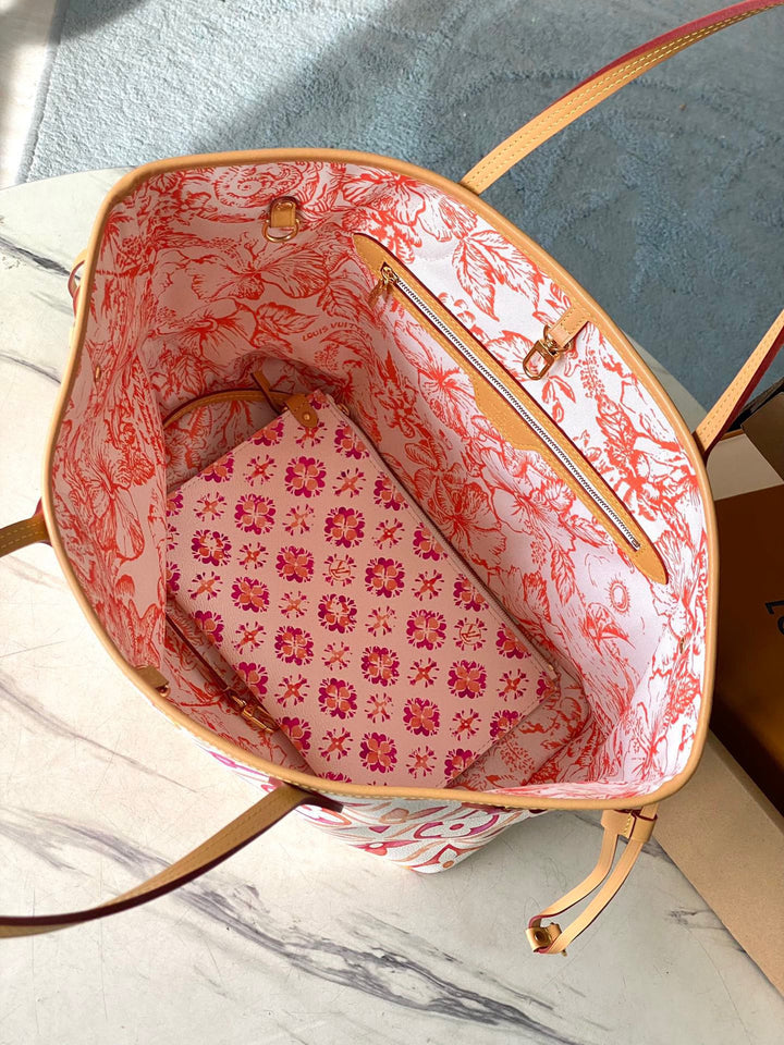 NEVERFULL MM 31 IN CORAL MONOGRAM TILES CANVAS