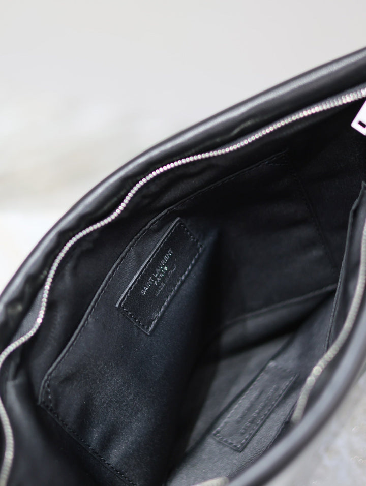 POUCH 30 IN BLACK CALFSKIN WITH EMBOSSED LOGO