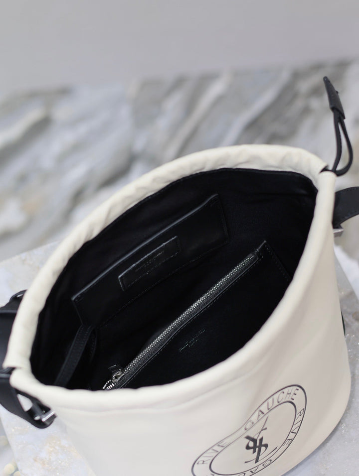 RIVE GAUCHE BUCKET BAG 23 IN WHITE CALFSKIN