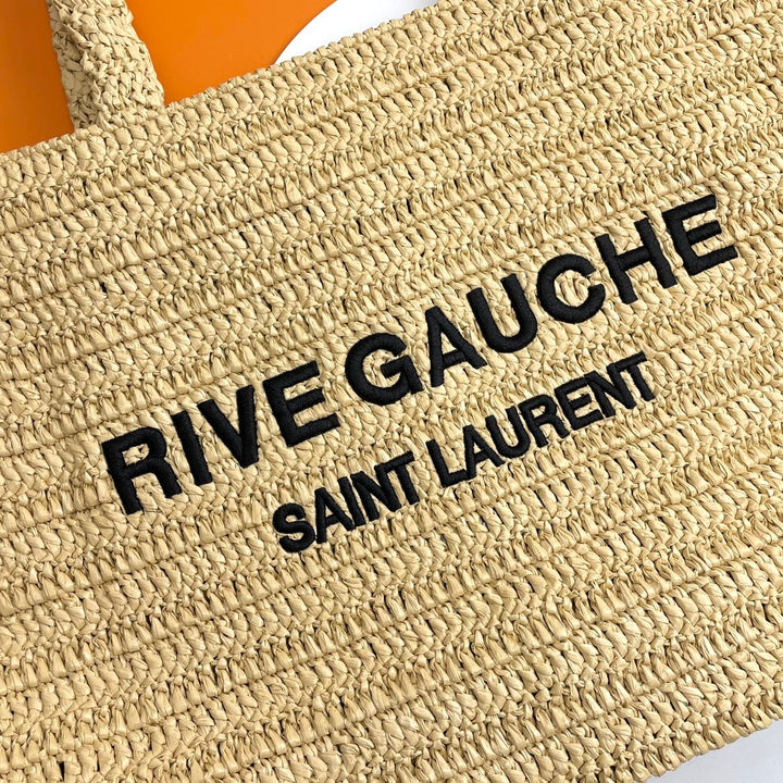 RIVE GAUCHE TOTE BAG 38 IN LIGHT YELLOW RAFFIA