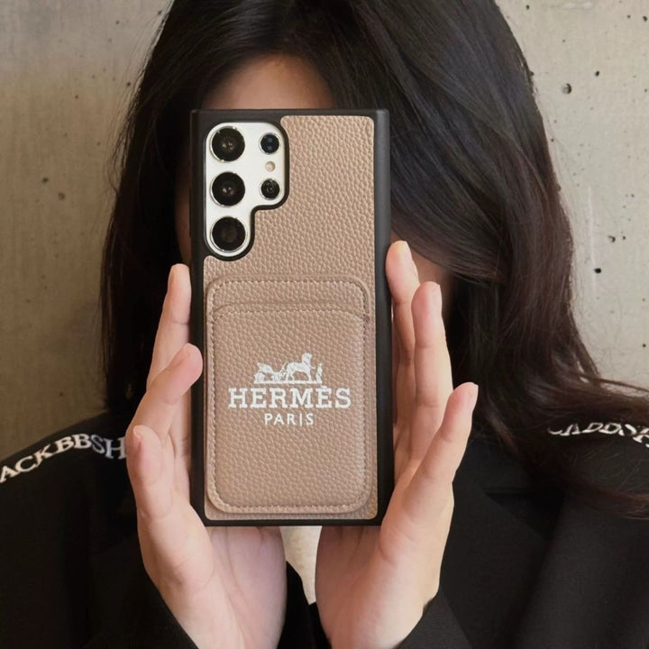 Samsung mobile phone leather case with card holder high-grade lychee pattern