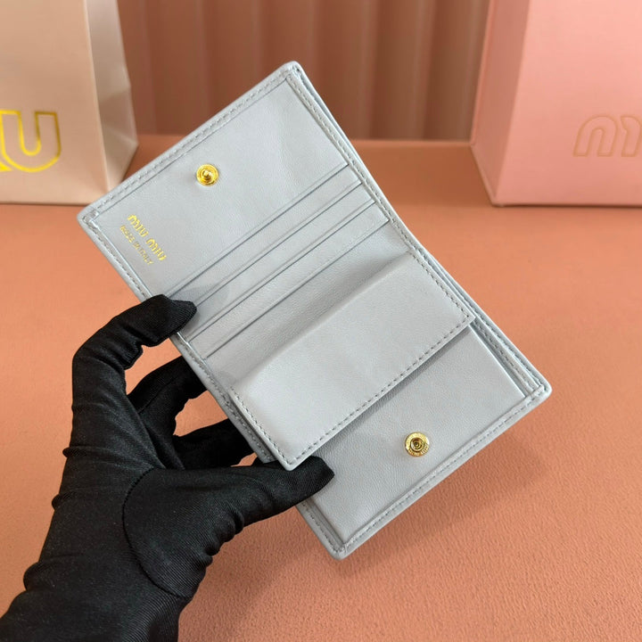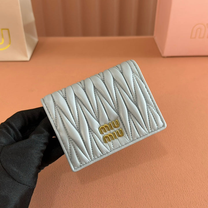 SMALL MATELASSÉ NAPPA LEATHER WALLET BLUE GRAY