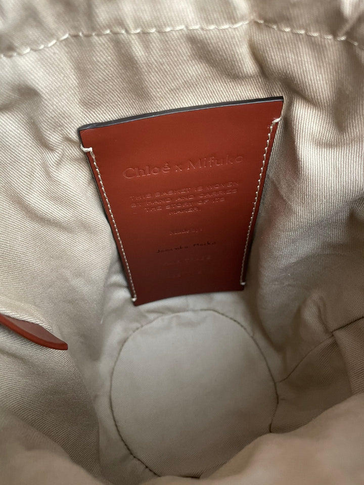 SMALL WOODY BASKET 17 IN NATURAL FIBERS BROWN WEBBING DARK BROWN CALFSKIN