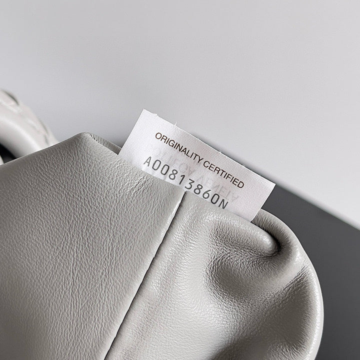 ?Padded Intrecciato leather teen clutch with leather braided metal chain