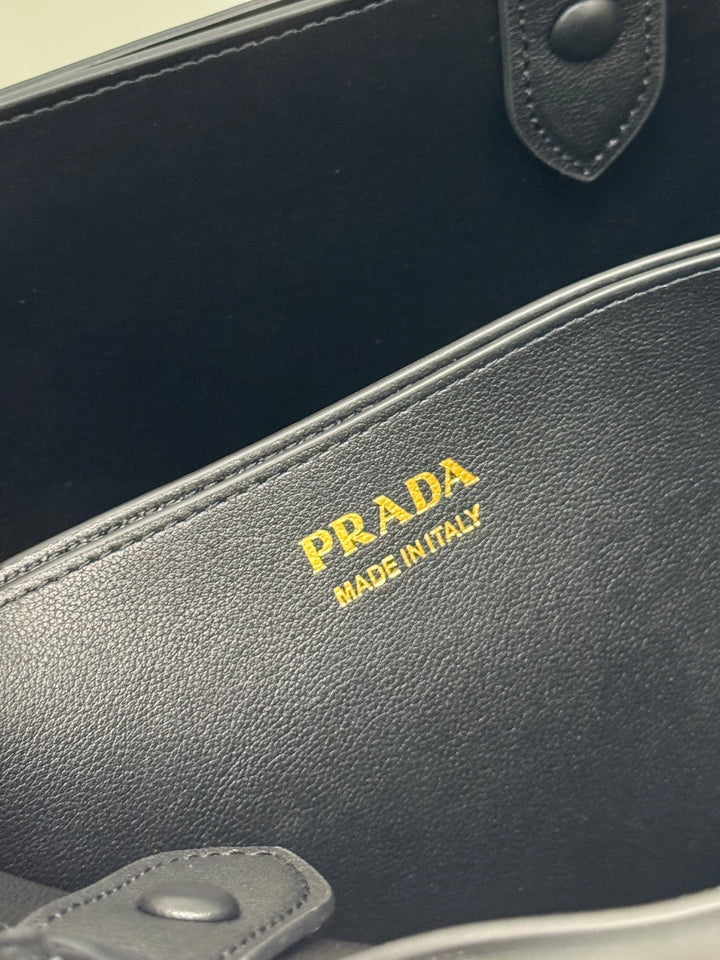 TOTE BAG WITH BELT 32 IN BLACK IMPORTED CALFSKIN