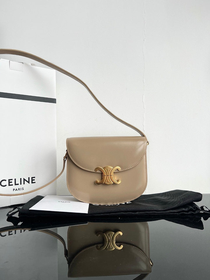 TRIOMPHE 15 Cream Gray Calfskin Handbag