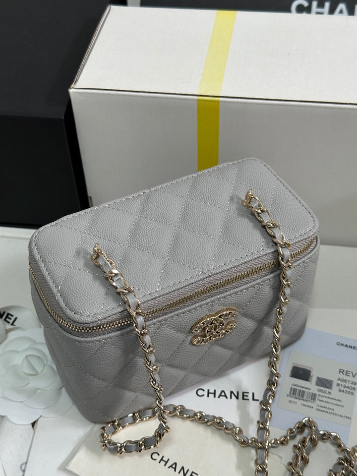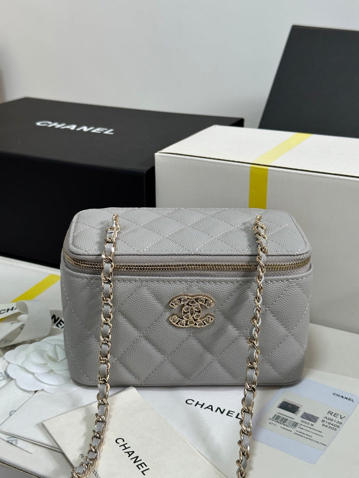 VANITY CASE 17 CRYSTAL STUDDED LOGO IN GREY CALFSKIN GOLD HARDWARE