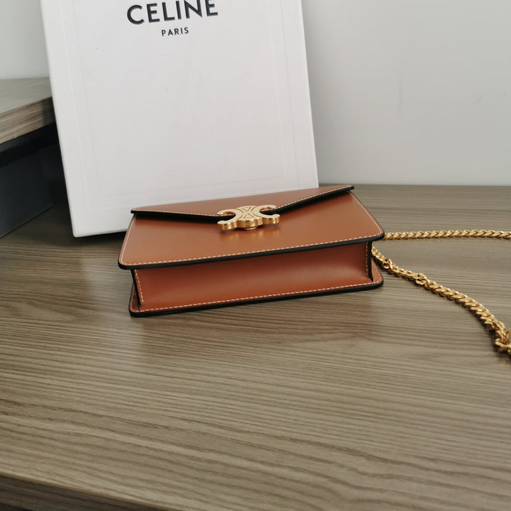 WALLET ON CHAIN MARGO 19 IN RUST ORANGE SMOOTH CALFSKIN GOLD HARDWARE