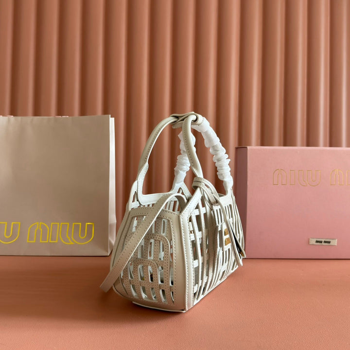 WOVEN HOLLOW BAG 24 IN WHITE CALFSKIN
